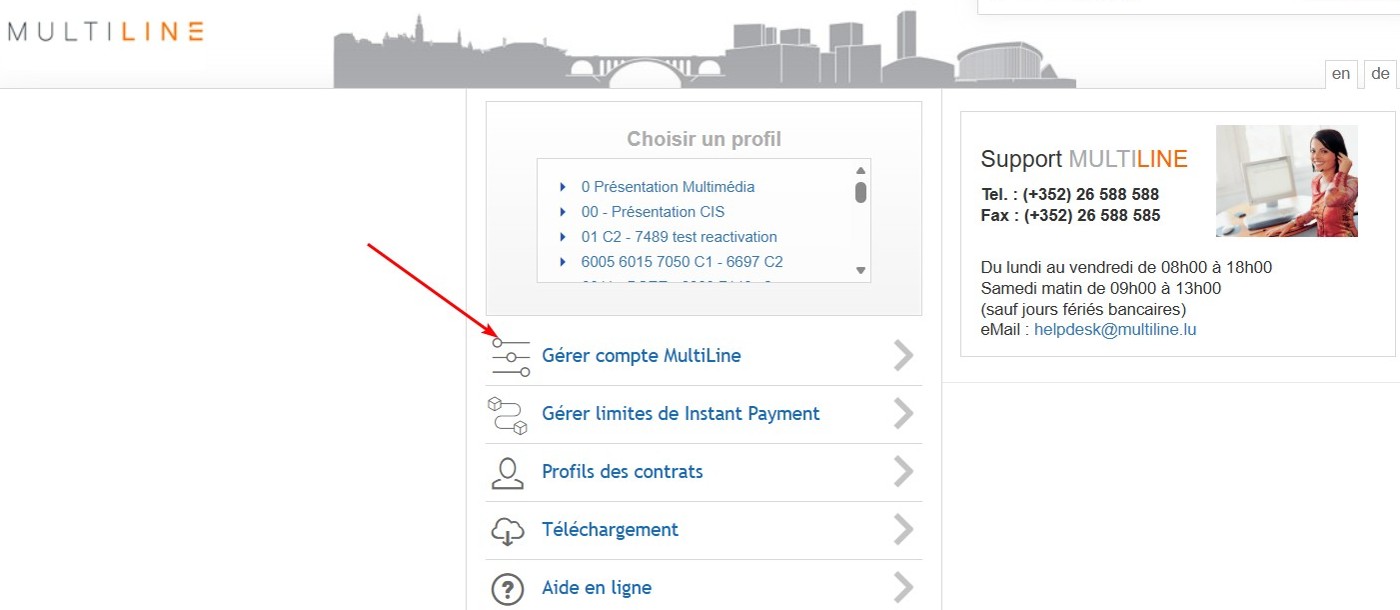 Sur la page d’accueil choisissez “GĂ©rer compte MultiLine” :